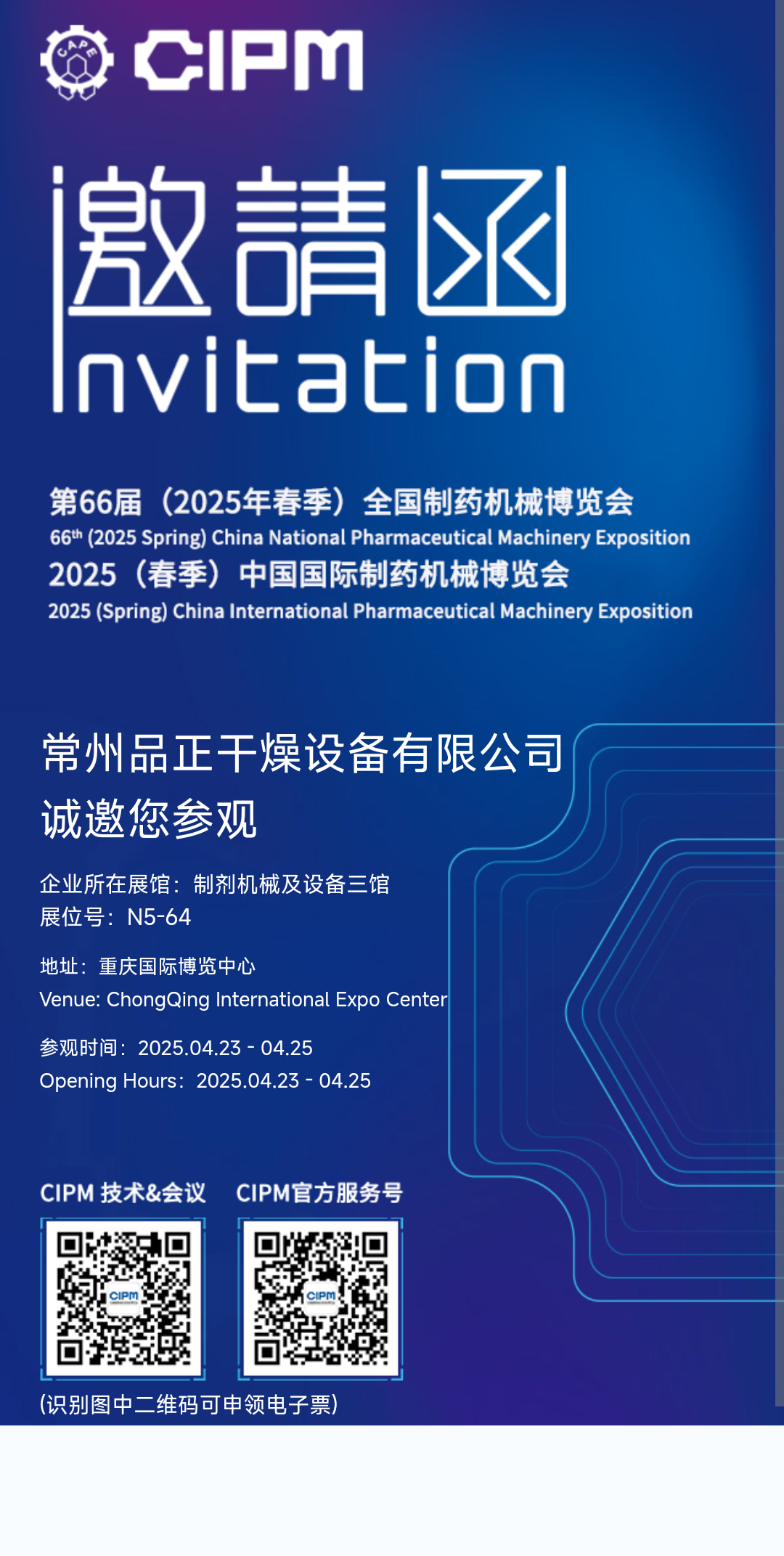 常州品正干燥設(shè)備有限公司期待與您相會(huì)于 CIPM,攜手共創(chuàng)制藥行業(yè)新未來(lái)!